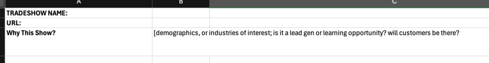 Whether you’re preparing for your first industry conference or managing a full calendar of tradeshows, this tool keeps your team aligned and your leadership confident in the numbers.