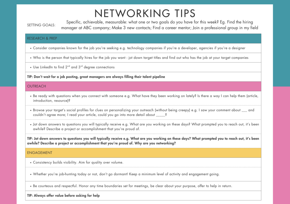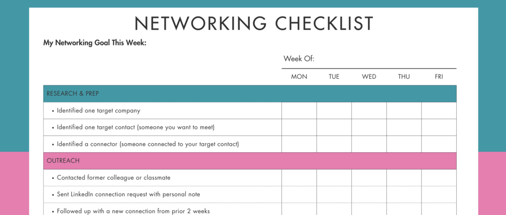 Whether you’re reconnecting with colleagues, reaching out on LinkedIn, or preparing for informational interviews, this checklist keeps you on track and motivated.